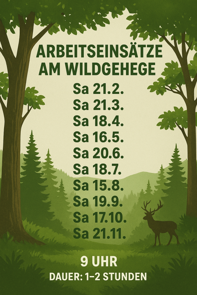 Im Wald bei unseren beiden Gehegen gibt es immer etwas zu tun. Sei es das Weiterentwickeln oder Reparieren, Erneuern und Pflegen, es gibt immer etwas zu tun. Ohne fleißige Helferinnen und Helfern, egal ob Mitglied oder nicht, jeder ist willkommen. Wenn auch Ihr Lust und Zeit habt kontaktiert uns gerne und kommt vorbei.